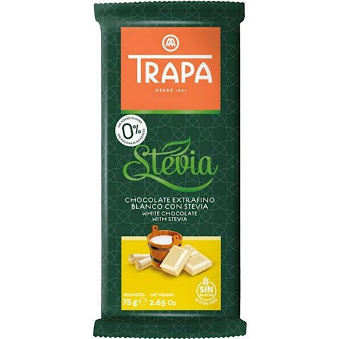 Składniki: Słodziki (maltitol i stevia (0,02%)), masło kakaowe, pełne mleko w proszku, masa kakaowa, masło, emulgator (lecytyna sojowa) i aromaty.