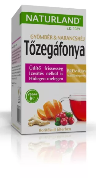 Naturland Prémium Tőzegáfonya-Gyömbér-Narancshéj gyümölcstea 20x2 g