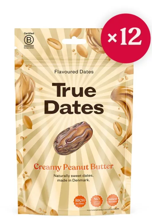 Magozott datolya mogyoróvajjal. Összetevők: Datolya (nem EU-s) (81%), cikóriagyökér rost, mogyoróvaj (9%), növényi zsír (kókusz), természetes aroma, só. Nyomokban mandulát tartalmazhat. Száraz, hűvös helyen tárolandó. Felbontás után 14 napon belül fogyasztható.